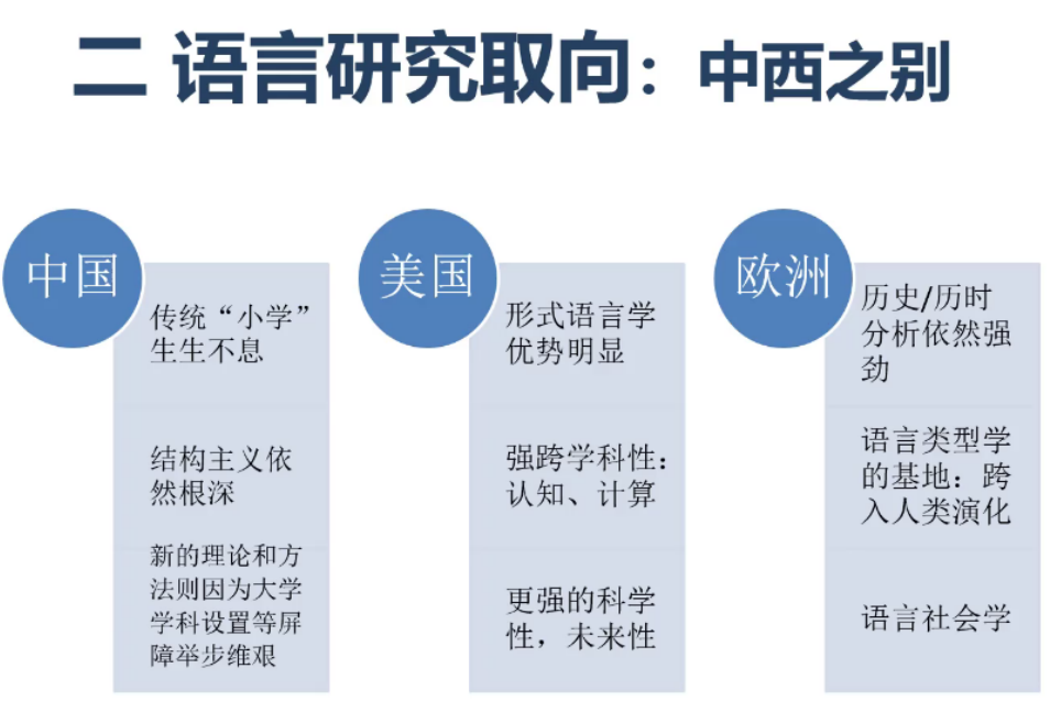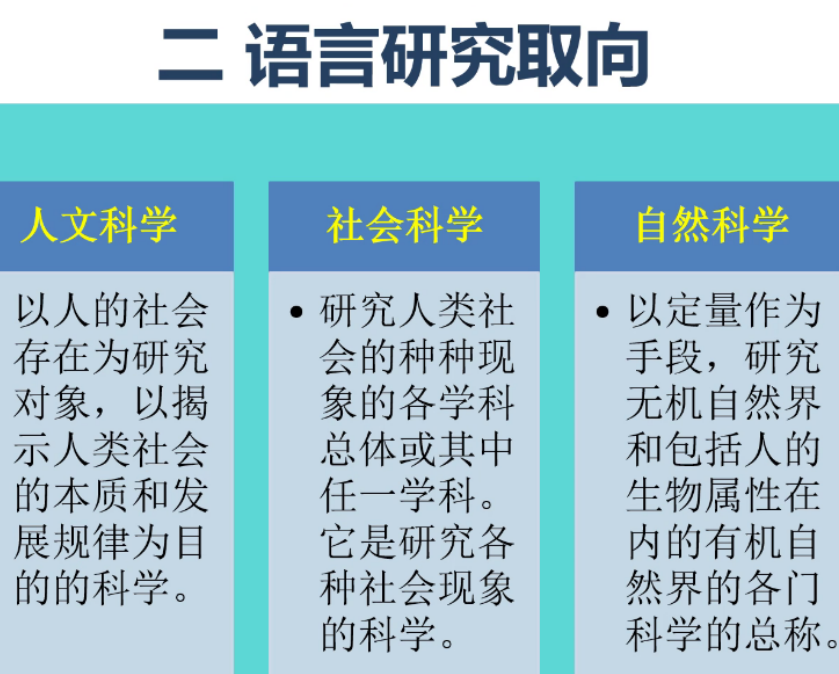 讲座伊始,王春辉教授从“语言”与“言语”这一对基础概念出发,激发同学们对于语言现象的思考,同时引入对“语言研究取向”的介绍。王教授以人文科学、社会科学、自然科学三方面为切口,为同学们剖析看似宽泛的语言学研究方向,并且点出了语言研究的三大方向,为同学们厘清语言研究的领域起到了启发作用。