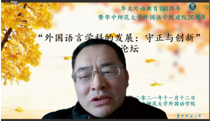 2021年11月12日,“外国语言学科的发展:守正与创新”学术论坛在华中师范大学外国语学院顺利召开。作为对外国语学院建院20周年暨华大外语教育150周年的献礼,本次论坛由华中师范大学外国语言学研究青年创新团队举办,以线上和线下相结合的方式举行。