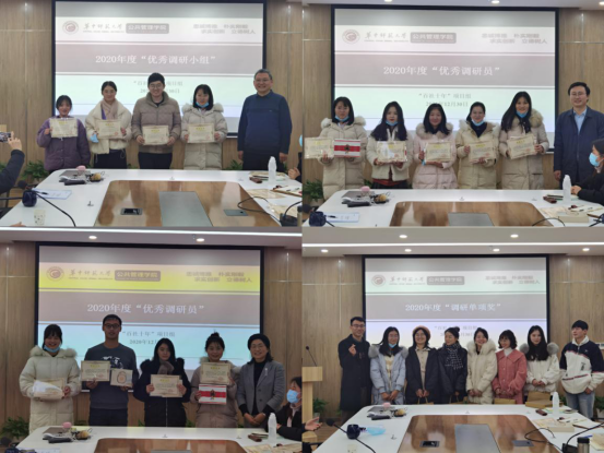 会议第三项议程,进入表彰环节。中心常务副主任徐增阳为获奖的优秀调研小组颁奖。费军、周凤华、冷向明3位老师为优秀调研员颁奖。张奎力、饶常林、谢胜华、陈刚华、魏来、王戈6位老师为获得调研单项奖的同学们颁奖。