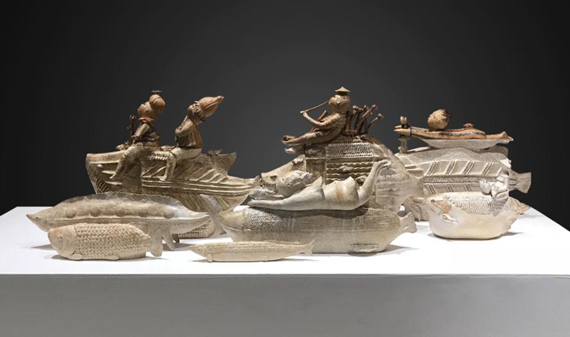美术学院教师邱玲陶艺进京作品《金色童话》,150cmx40cmx50cm