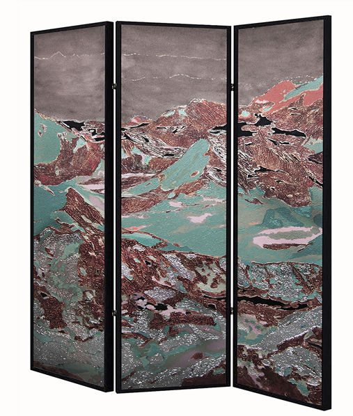 美术学院教师魏勇漆画屏风《疏风声远》,180cm*120cm