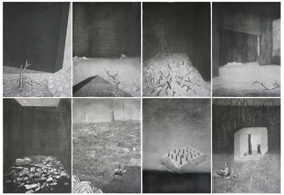 美术学院研究生刘思颖版画《镜像系列组画》,指导教师姚元鲁;80cmX100cm