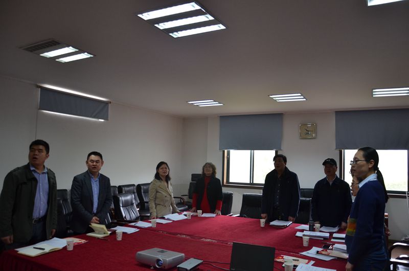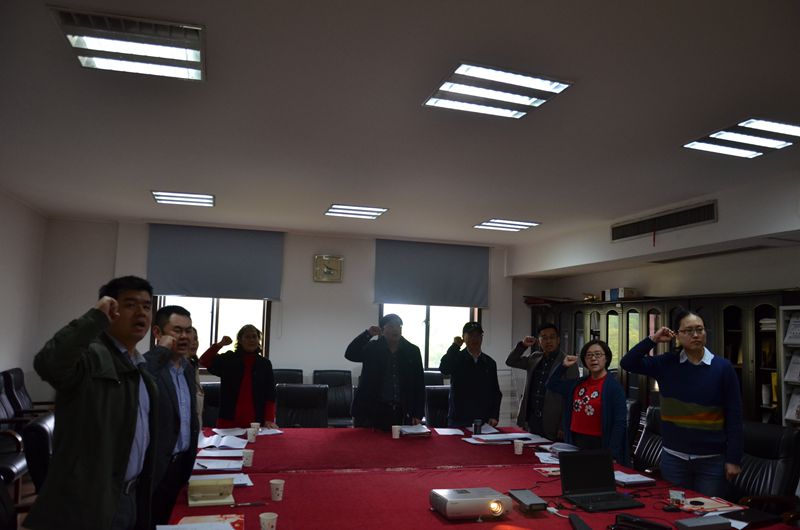 首先,全体党员起立奏唱国歌。接着,马珺同志带领全体党员重温入党誓词。