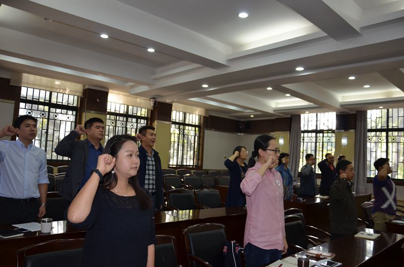 学习活动在全体党员集体奏唱国歌声中开始。接着,吴海涛同志带领全体党员重温入党誓词,周汉鸣同志和卞亚琴同志诵读党章部分章节。