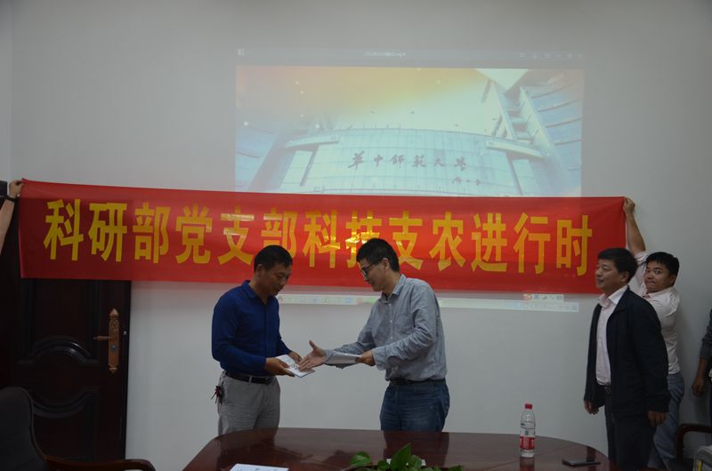 会上,徐杰和张汉中代表两个党支部向头潭村赠送了科研部精心编制的5套科技支农服务手册。