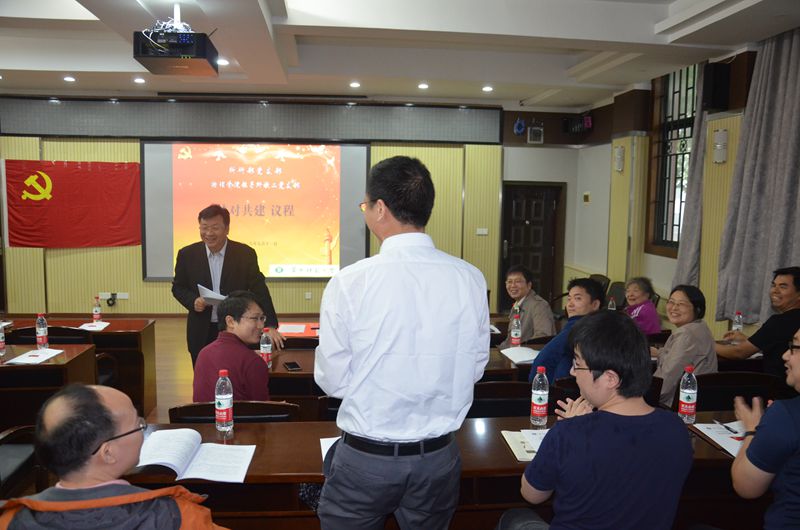 科研部部长杨亚东介绍了机关党委开展机关各支部与院系支部开展结对共建活动的背景和要求,认为共建活动有利于机关服务落到实处,改进党支部活动方式,提高机关服务院系发展、服务“一流学科”建设的能力和水平等。他指出,科研部党支部要按照机关党委规定,认真组织好、落实好两个党支部的各项结对共建活动。为了两个“结对”党支部成员能够尽快熟悉,他还对双方成员做了具体介绍。