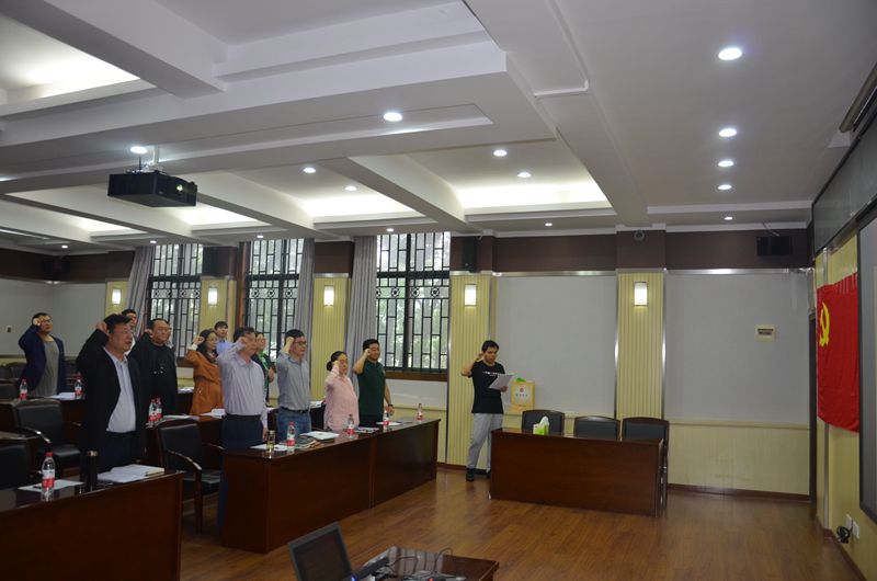 会上,粒子所党支部组织委员邓为炳带领两个党支部全体成员重温了入党誓词。