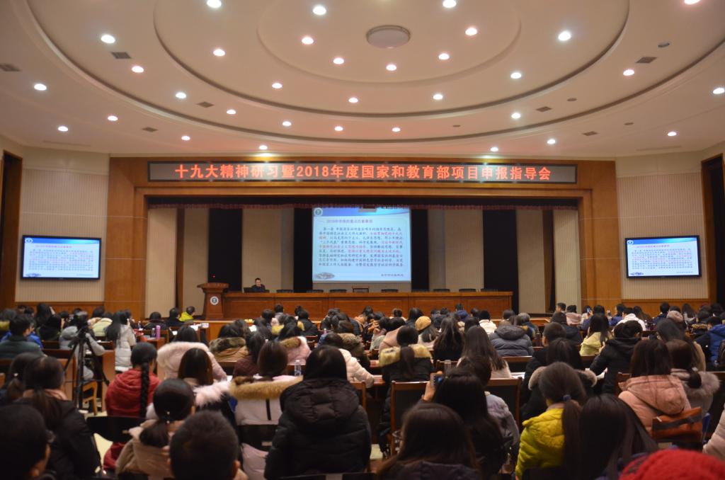 2018年1月9日下午,由社科处主办的“十九大精神研习暨2018年度国家和教育部项目申报指导会”在科学会堂一楼报告厅顺利召开。全校计划申报科研项目教师参加了会议,会议由社科处副处长吴海涛主持。