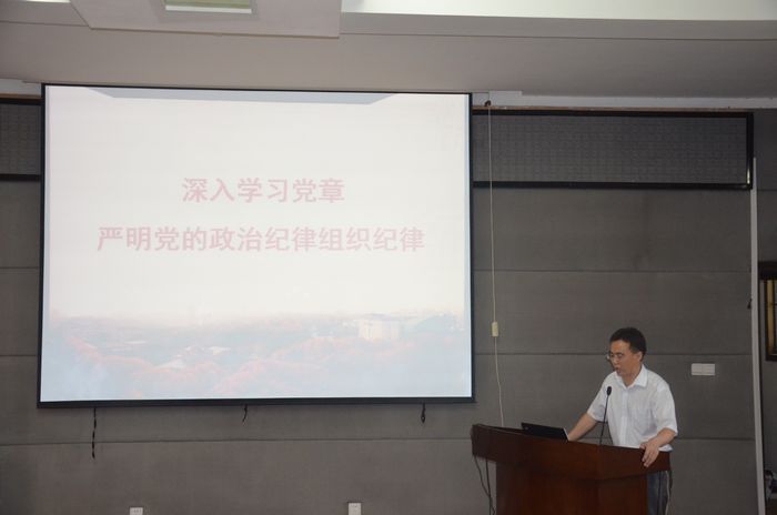 教务处、质量监测与评估中心党支部书记曹慧东为全体党员做了以“深入学习党章 严明党的政治纪律组织纪律”为主题的“书记讲党章”专题教育报告。他简要介绍了党章16次修改历程,重点总结了十八大通过的现行党章修改情况。他指出,十八大对党章的修改主要集中在六个方面,一是对科学发展观作出新的定位和阐述。首次把科学发展观列入党的指导思想,是这次党章修改的最大亮点和最突出的历史贡献。二是充实完善了中国特色社会主义重要成就的内容。确立了中国特色社会主义制度,将中国特色社会主义道路、理论体系、制度作为一个整体在党章进行完整表述。三是充实了中国特色社会主义总体布局的内容。把生态文明建设同经济建设、政治建设、文化建设、社会建设一道,纳入中国特色社会主义事业总体布局。四是充实了坚持改革开放的内容。进一步强化改革开放内容的分量,对深化改革开放作出新的部署,提出新的目标任务。五是充实完善了关于党的建设总体要求的内容。增写了加强党的纯洁性建设,整体推进党的思想建设、组织建设、作风建设、反腐倡廉建设、制度建设,全面提高党的建设科学化水平,建设学习型、服务型、创新型的马克思主义执政党等新内容。六是对部分条文作了适当修改。关于党员、党的基层组织、党的干部这三条作了一些修改,对党员、党的干部和干部工作提出了一些新要求。